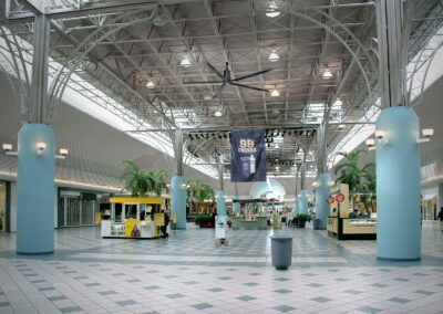 53-105 RPM. Construit avec un moteur à réducteur hélicoïdal en ligne offrant un fonctionnement silencieux pour les applications sensibles, et une brise fraîche de 6 MPH pour les zones jusqu'à 230 pieds.
