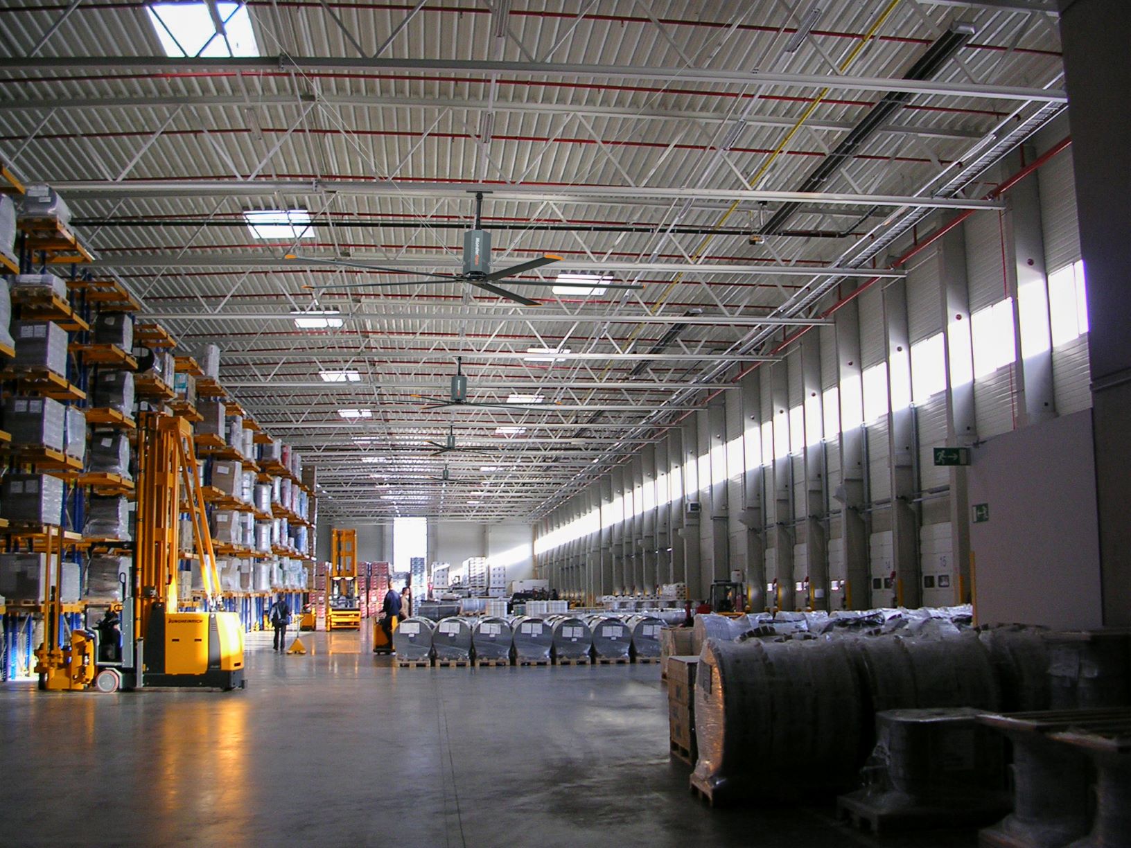 Découvrez comment nos MonsterFans permettent d'économiser de l'énergie pour votre système de chauffage en hiver. Lors du chauffage de grands bâtiments, la chaleur monte naturellement au plafond et est gaspillée. Avec des rotations lentes, les MonsterFans permettent à l'air chaud de commencer à se déplacer et de se répandre dans le bâtiment.